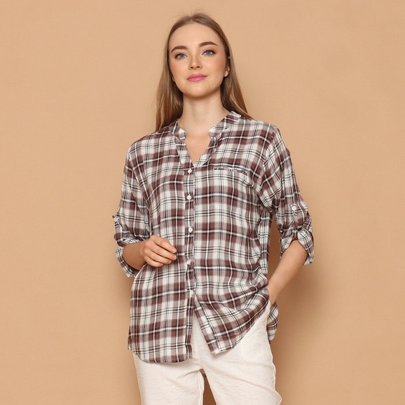 (Hanya di Shopee) Cammomile 2101032 SF1205 Kemeja wanita lengan panjang kotak