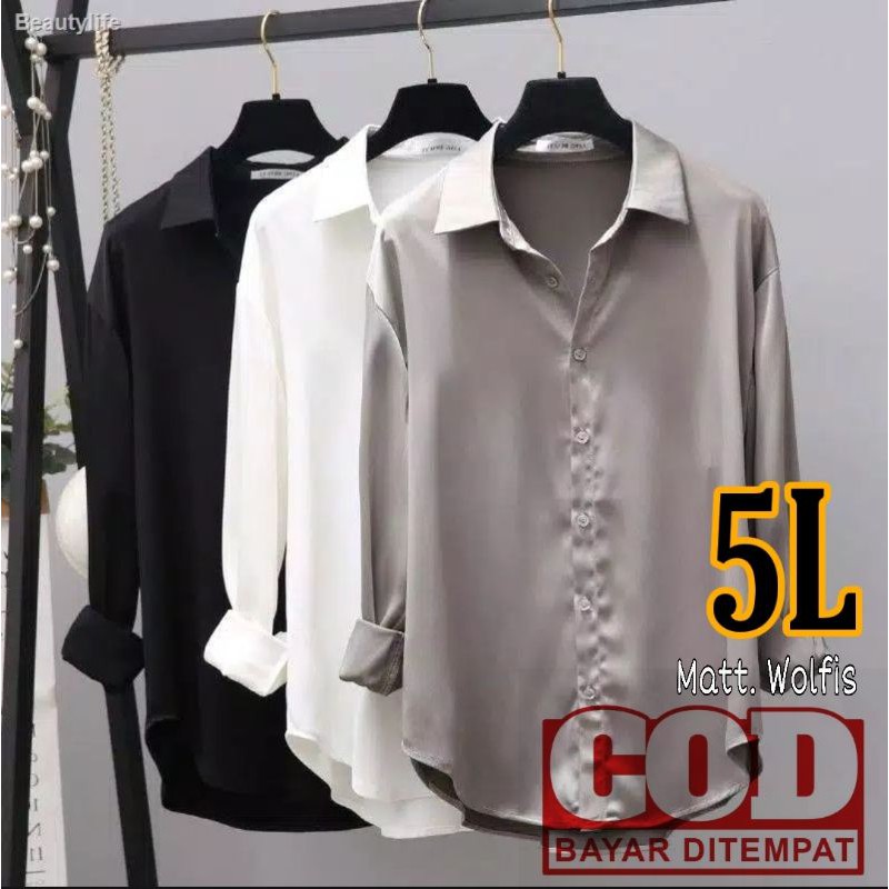 COD BAJU ATASAN FORMAL KEMEJA KERJA POLOS LENGAN PANJANG WANITA LD 110 120 130 5L 6L