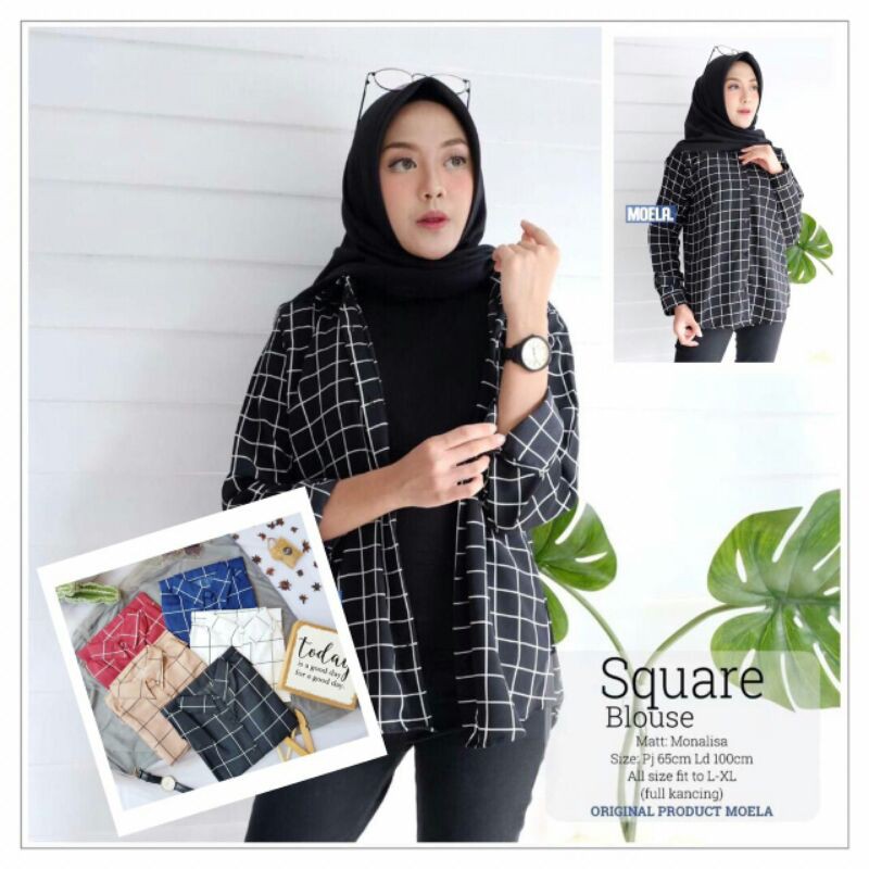 1kg 7pcs Kemeja Wanita Monalisa Motif Kotak Fashion Kerja Square Blouse Formal Lengan Panjang Blus